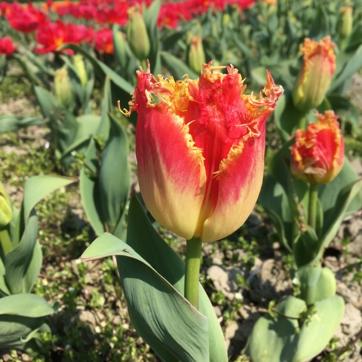 NOVEMBRE: la piantumazione! In occasione del primo TuliAlpi nell’autunno 2018 i bulbi erano “solo” 50.000 e ce li eravamo piantati tutti a mano!!! Dall’anno successivo, invece siamo stati “aiutati” da una piantatrice che ci ha consentito, nell’edizione 2022 di piantare 135.000 tulipani.